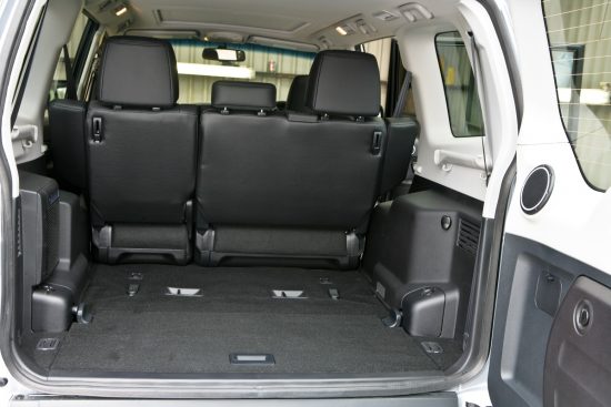 The rear door is vertical so there is not load capacity lost by having one raked forwards to make it look aerodynamic. This has happened with the new Land Rover Discovery which has gone all up-market and therefore less practical creating a gap in the heavy weight SUV market for the Shogun.