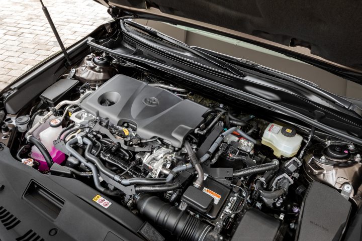 Both Camry versions use the same powertrain. It is a self-charging petrol-electric hybrid system using a 2.5-litre, 4-cylinder 16-valve DOHC petrol unit with dual VVT-i valve timing mated to an electric motor/generator. Drive to the front wheels is through the usual CVT auto transmission which has six simulated gear-change steps.